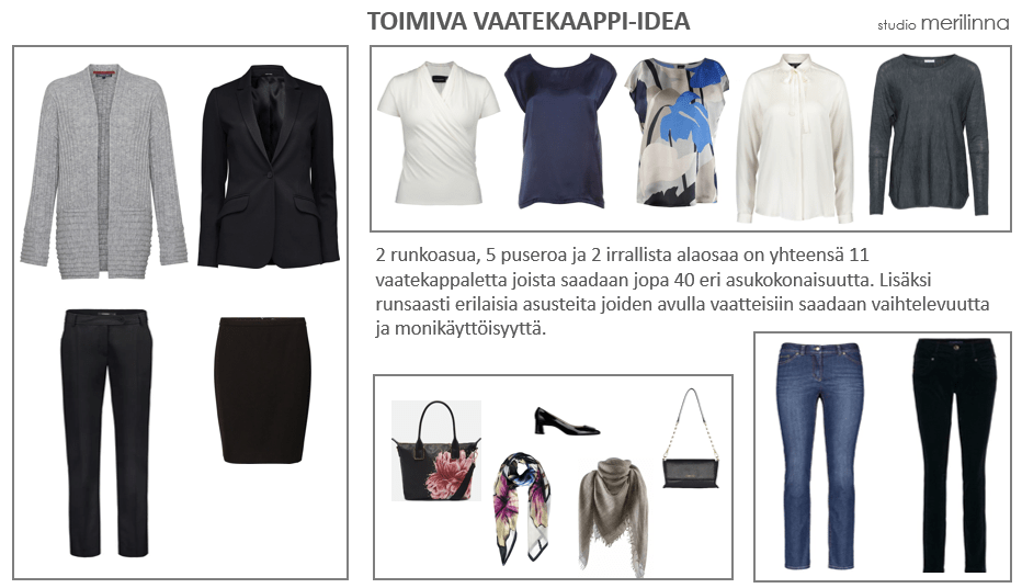 Aiemmassa artikkelissa kerroin, kuinka koota naisten toimiva vaatekaappi arkea helpottamaan ja vaatekaapin kaaosta taltuttamaan. Näin pikkujoulusesonkina voisin kertoa kuinka koota toimiva pikkujouluasu, mutta jatkan toimivan vaatekaapin parissa kokoamalla miehelle toimivan puvuston. Tekniikka on edelleen sama, eli 11 vaatekappaletta muodostavat 40 erilaista asukokonaisuutta. Kun vaatteet hankitaan harkiten ja värit sopivat toisiinsa, jokainen vaate sopii yhteen toinenJatka lukemista ”Miehen toimiva vaatekaappi”